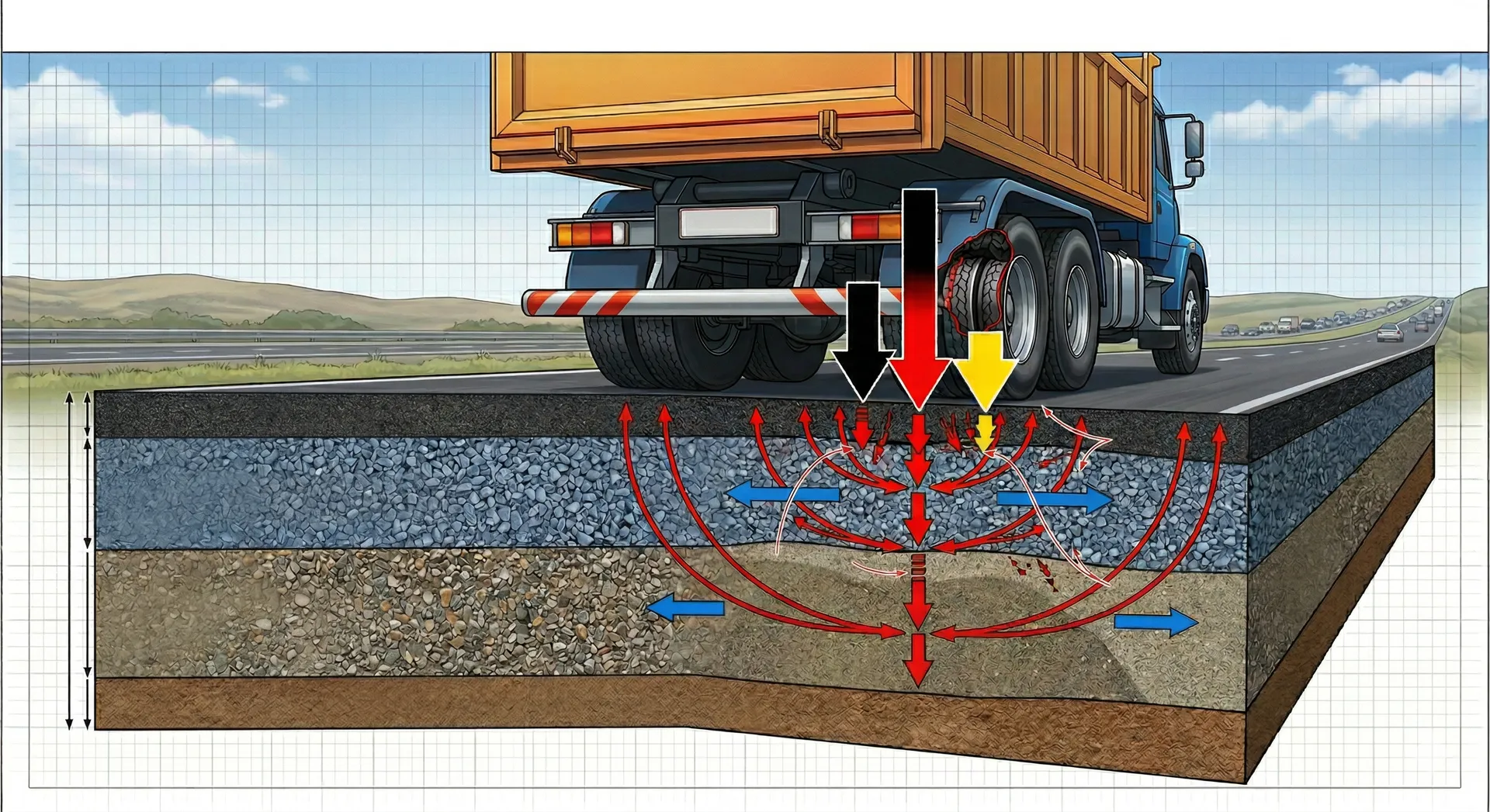 El comportamiento de un pavimento depende de múltiples variables: cargas de tránsito, capacidad de soporte del suelo, materiales disponibles y condiciones climáticas. Evaluamos cada proyecto con ensayos de deflectometría que permiten calcular el módulo efectivo de cada capa y diagnosticar el estado estructural real.